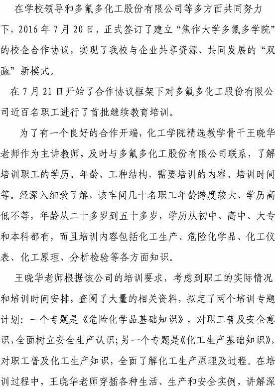 304永利集团与多氟多化工股份有限公司校企合作跨出第一步