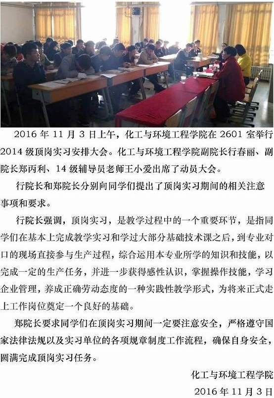 化工学院举行顶岗实习动员大会