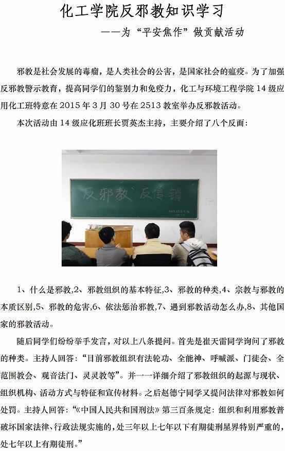 化工学院反邪教知识学习