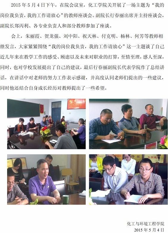 化工学院开展主题为“我的岗位我负责,我的工作请放心”的教师座谈会