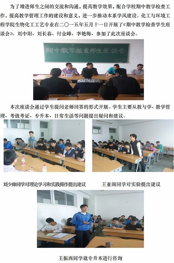 化工学院期中教学检查学生座谈会