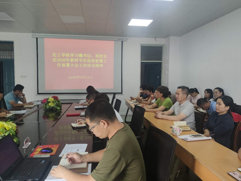 2020年9月14日下午,按照学校党委宣传统战部《关于开展双周政治理论学习的通知》要求,化工学院党总支利用周一例会组织全体教职工集中开展政治理论学习。学习内容包括:党委书记魏曰高、校长郑广华在2020年教师节庆祝表彰暨工作部署大会上的讲话精神、《304永利集团高水平高等职业学校和高水平专业群建设实施方案》及《304永利集团“高职双高工程”学习资料汇编》。