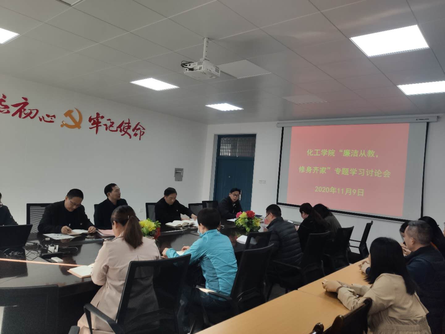 为了深入贯彻校党委《关于持续营造“三个氛围”推动学校高质量发展的实施方案》,同时根据校纪委《关于开展廉洁好家风演讲比赛的通知》要求,11月9日,学院利用“双周”教职工集中学习时间,组织开展以“廉洁从教,修身齐家”为主题的学习讨论会。