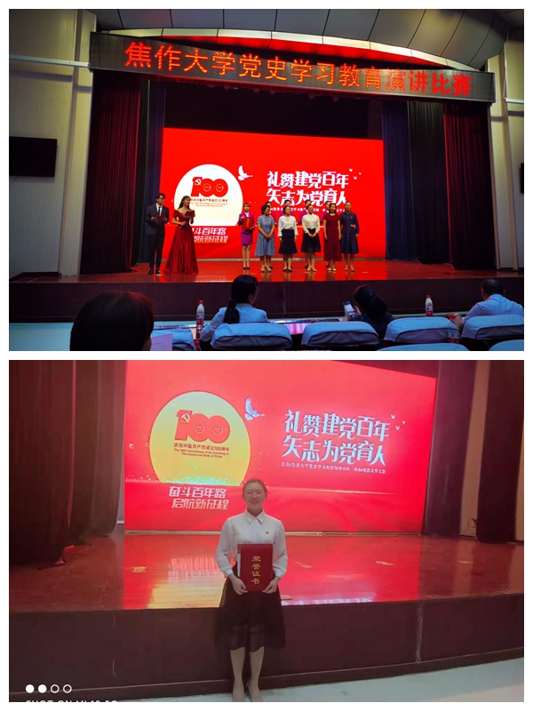 一段段感人的故事、一句句发自肺腑的真情流露,她的演讲感染了在场观众和评委,最终获得了本次教职工演讲比赛的三等奖,为学院挣得了荣誉!