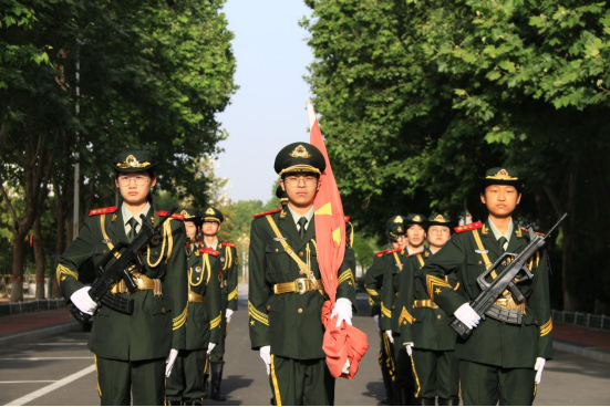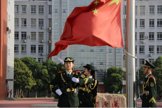 7点30分,升旗仪式正式开始。国旗班的旗手们身穿军绿色服装,喊着响亮的口号,迈着整齐划一的步伐,护卫着国旗走向升旗台。伴随着《义勇军进行曲》,鲜红的五星红旗冉冉升起,大家高唱国歌面向五星红旗肃立行注目礼,嘹亮的国歌响彻了整个校园,也点燃了到场所有师生的爱国情怀。