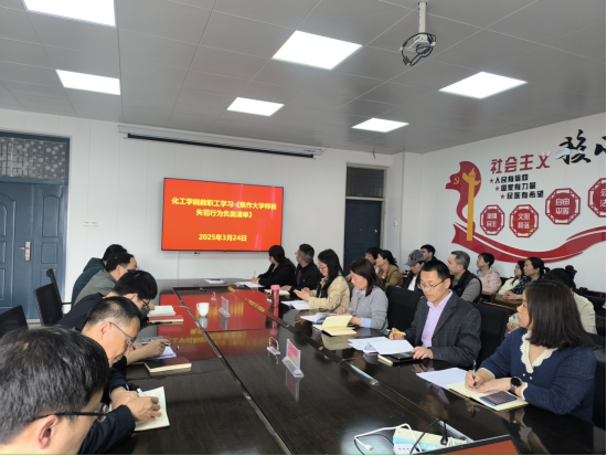 为进一步加强师德师风建设,提高教师职业道德水平,2025年3月24日化工与环境工程学院全体教师在学院会议室召开会议,学习《304永利集团师德失范负面清单》。会议由院长苏永祥主持。
