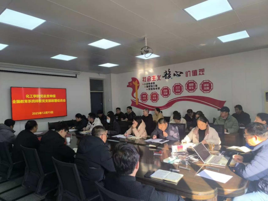 为进一步强化师德师风建设,严明教师职业行为底线,2025年12月15日化工学院全体教职工在学院会议室学习教育部公开曝光的违反教师职业行为十项准则典型案例,会议由学院党总支书记胡鹏主持。