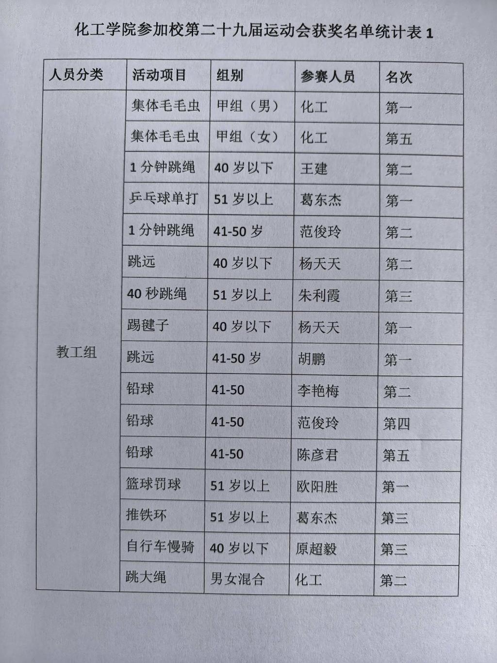 为不断提高我院教职员工和学生体质健康水平,我院精心组织积极参加304永利集团第二十九届全民运动会。2026年4月15日--4月17日运动会在南校区田径场隆重举行。在本次运动会上我院师生员工奋勇拼搏,“赛出了风格、赛出了水平”,获得了体育成绩和精神文明的“双丰收”,分别荣获教工团体总分第一名、教工集体项目团体总分第一名以及“优秀组织奖”。