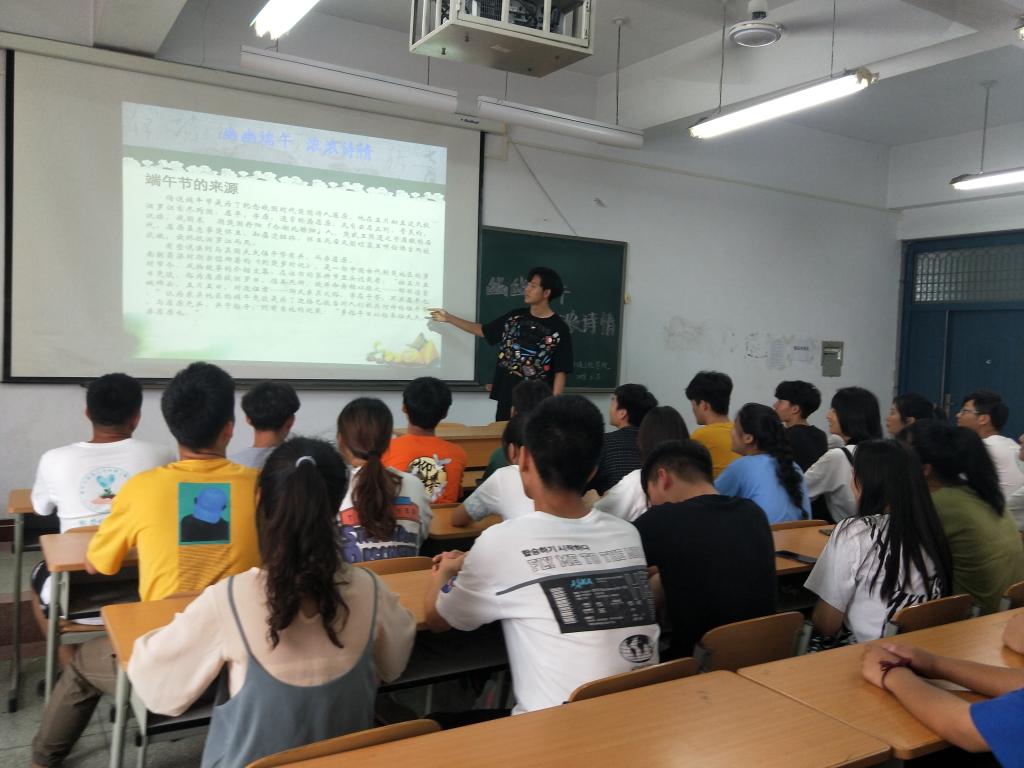 端午节,是中华民族的传统节日。为了传承中华民族优秀文化传统,弘扬和培养以爱国主义为核心的民族精神;引导大学生进一步了解传统节日,认同传统节日,喜爱传统节日,过好传统节日;充分挖掘端午节的深厚文化内涵。化工学院在端午节来临之前开展了以“幽幽端午 浓浓诗情”为主题开展班会。
