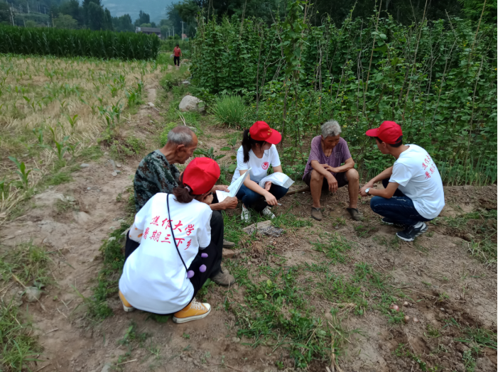 为加强新农村建设,了解农村环境污染情况,化工学院“三下乡”青年志愿者深入到焦作市后寨展开为期六天的社会实践活动,在田间地头,通过与当地农民座谈,走访调查,发放问卷调查表等多种方式,发现了河流、土地、生活垃圾、农药、饮用水水源等环境污染问题。了解到了村民们将生活垃圾直接倒在路边或空地上,而为了农作物的产量,村民们相对于环保更注重农药的效果。由于建立水电站及铁路而改变丹河河道,导致水土流失及淹没长有树木的土地,迫使树木淹死。而且因没有完善的污水处理系统致使水体富营养化严重,藻类横生,鱼儿受到水质污染而死等现象。在了解到村民们对环保知识的匮乏后,志愿者们积极主动向村民普及环保知识,如:垃圾如何分类,农药瓶的处理等。