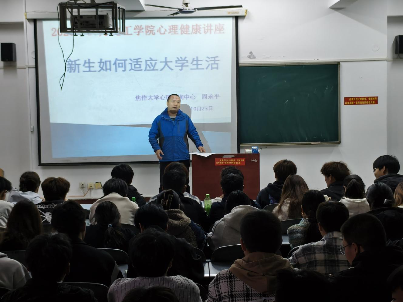 为了切实提升新生心理健康水平,帮助新生快速融入大学生活,平稳度过适应期,在 2025 年心理健康教育宣传周来临之际,化工学院于 10 月 23 日下午成功举办《新生如何适应大学生活》主题心理健康讲座。本次讲座由化工学院副院长王拥军主持,我校心理咨询中心周永平老师主讲,学院 2025 级新生到场聆听。