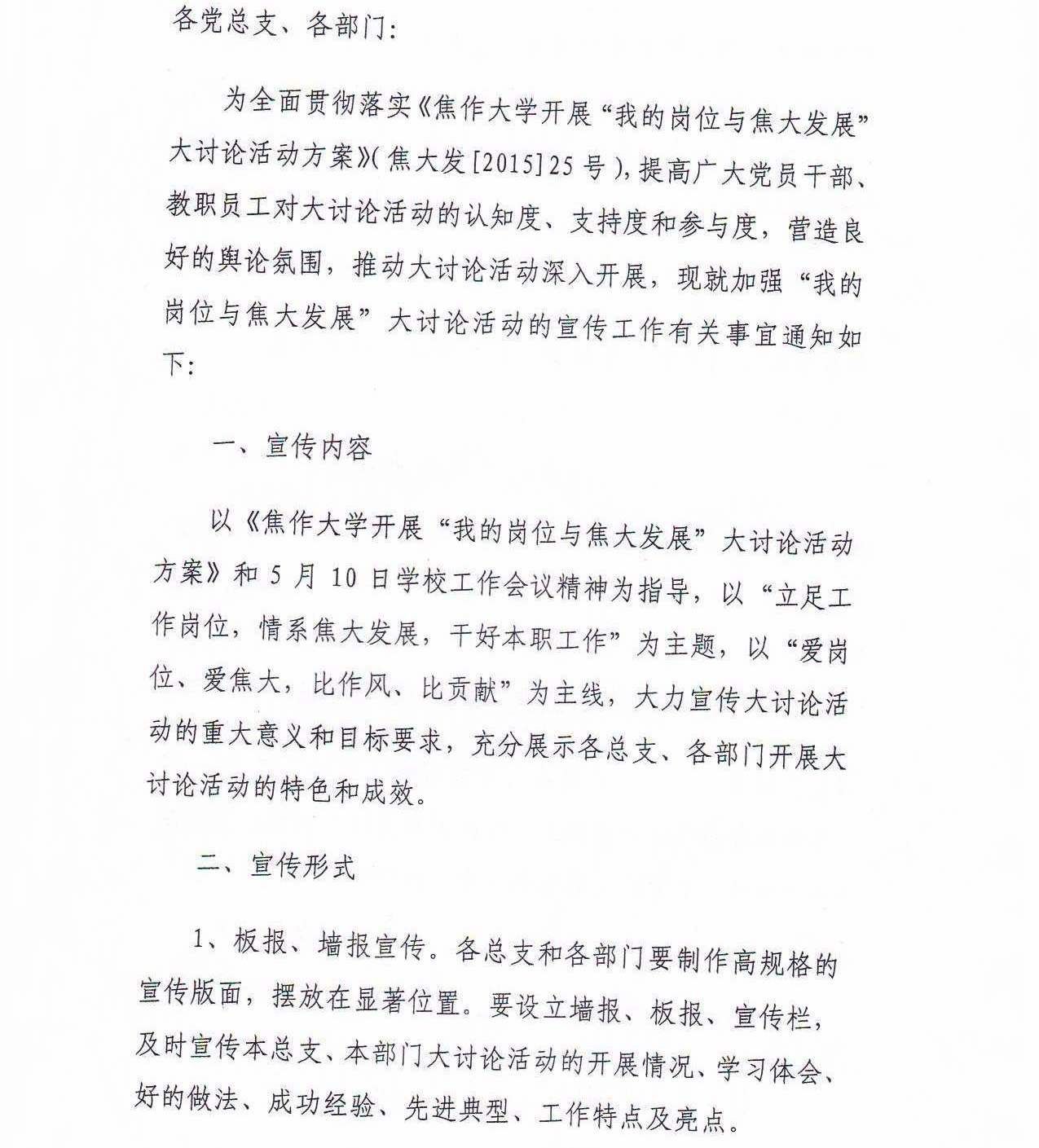 304永利集团开展||“我的岗位与焦大发展”大讨论活动方案