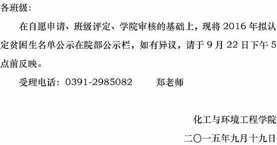 2016年贫困生拟认定名单公示