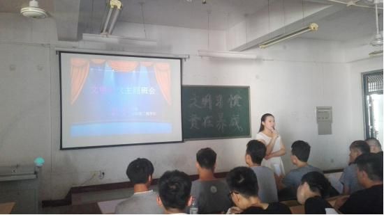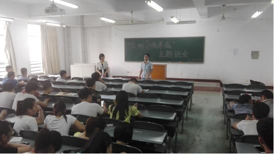 主题班会贴近学生的生活,辅导员老师从发生在我们的校园内总能见到与我们美丽的校园极不和谐的纸屑,教室、校园食品袋、方便面盒随处可见,还有部分同学相互之间讲脏话、粗话,随意攀爬树枝,甚至还有个别同学故意损坏学校的公共财物说起。15级辅导员老师董蒙蒙从“礼仪习惯”、“生活习惯”、“交通习惯”、“学习习惯”向学生讲述了养成良好文明习惯的重要性,并带领同学们进行了“严格遵守行为规范”的宣誓。14级辅导员老师王小爱通过一些生动有趣的生活例子向同学阐述了养成良好文明习惯的重要性。在班会上,同学们畅所欲言,纷纷表示今后会更加注重自己的行为规范,在日常的生活和学习中养成良好的文明习惯。