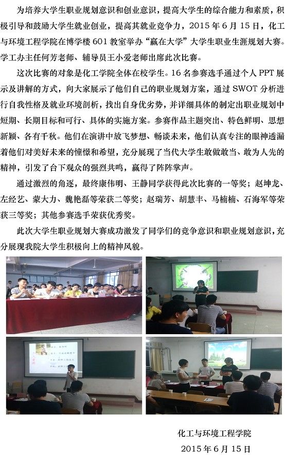 化工学院成功举办“赢在大学”大学生职业生涯规划大赛