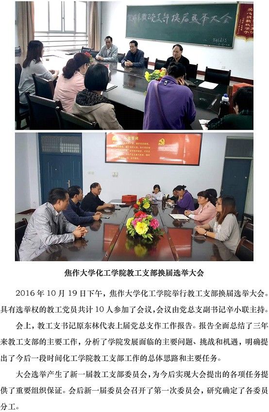 304永利集团化工学院选举产生新一届教工支部委员会