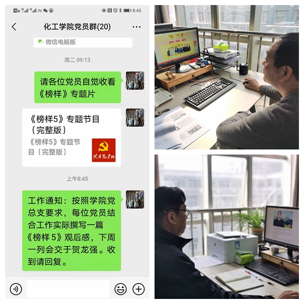 按照校党委组织部的通知要求,化工学院党总支积极宣传、组织全体党员收看中央组织部和中央广播电视总台联合制作的《榜样5》,将《榜样5》专题节目(完整版)下载转发到微信工作群以便大家更好的学习观看,同时要求每位党员结合工作实际撰写观后感和学习心得。