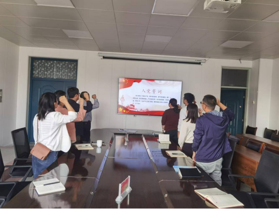 入党宣誓是党章的规定,重温入党誓词能使广大党员精神受到洗礼,意义深远,受益良多。在主题党日活动的最后,全体党员在组织委员杨天天老师的领誓下,全体党员庄严肃立,举起右手、握紧拳头,庄严宣誓:我志愿加入中国共产党,拥护党的纲领,遵守党的章程......随时准备为党和人民牺牲一切,永不叛党。誓词掷地有声,铿锵有力,让全体党员的心灵接受了深刻的洗礼。铮铮誓词也让每一位党员心潮澎湃,精神振奋。
