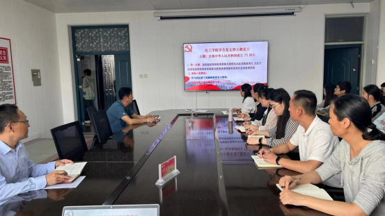 2024年10月14日下午,化工学院教工党支部在学院会议室召开了10月份的主题党日活动,活动的主题为“庆祝中华人民共和国成立75周年”主题党日。