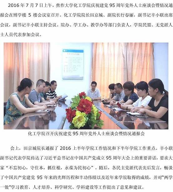 化工学院庆祝建党95周年党外人士座谈会暨情况通报会召开