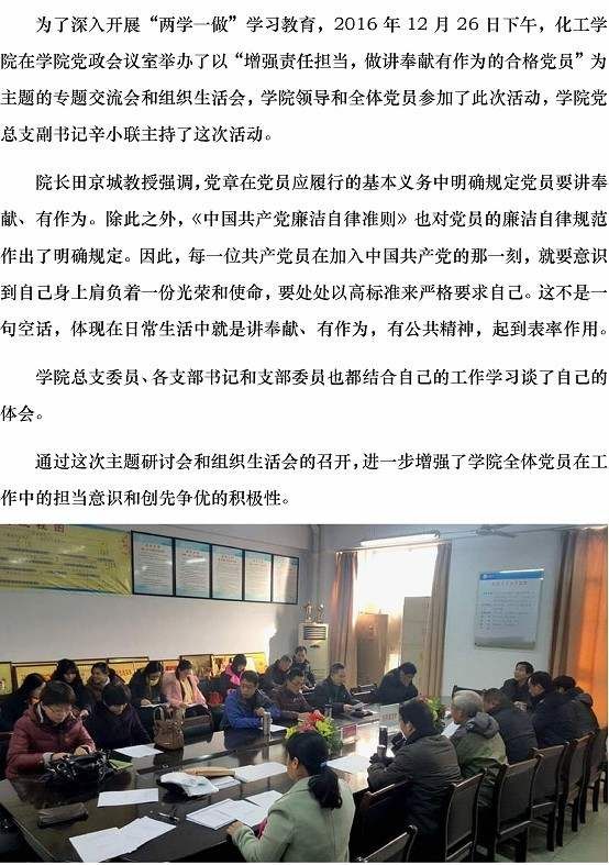 化工学院举办“增强责任担当,做讲奉献有作为的合格党员”研讨会和组织生活会